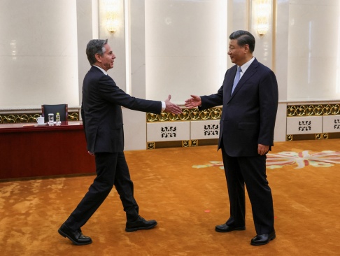 Кто это так подобострастно в полупоклоне тянет ладошку к монументально стоящему статному человеку явно азиатской наружности? Ба! Да это же господин Блинкен пытается поздороваться с лидером современного Китая! Вот, значит, какой теперь расклад сил. Все более чем наглядно.