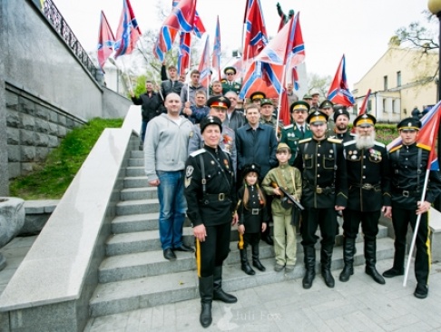«Звездочкой» торжественного митинга стала маленькая казачка Ксения – вместе с отцом она приехала во Владивосток в полной казачьей «справе» - настоящей исторической форме казачества. Как и у многих участников митинга, ее одежда была украшена георгиевской ленточкой. А значит, при таком воспитании, не прервется историческая связь времен. Всего в митинге «РОДИНЫ» приняло около сотни человек.