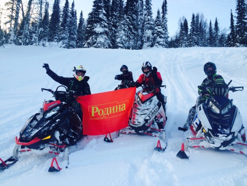 Кировские райдеры на снегоходах подняли флаг партии "РОДИНЫ" на Алтайские горы на высоту 1680 метра.