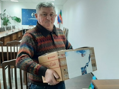 Председатель реготделения Айвар Уракчиев лично передал собранное силами соратников в пункт сбора, организованный в Общественной палате КЧР.